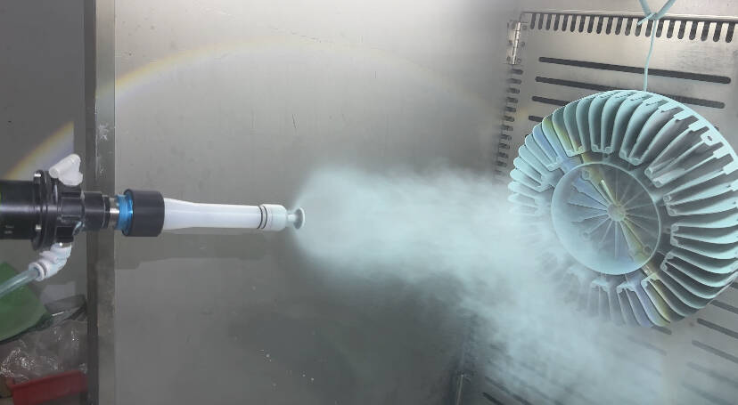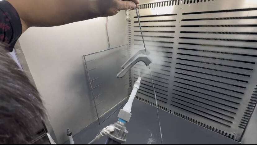 This compact rotary powder spray head makes inner corners, sheet metal parts, bent components, heat sinks, and lighting reflector plates no longer difficult to coat.