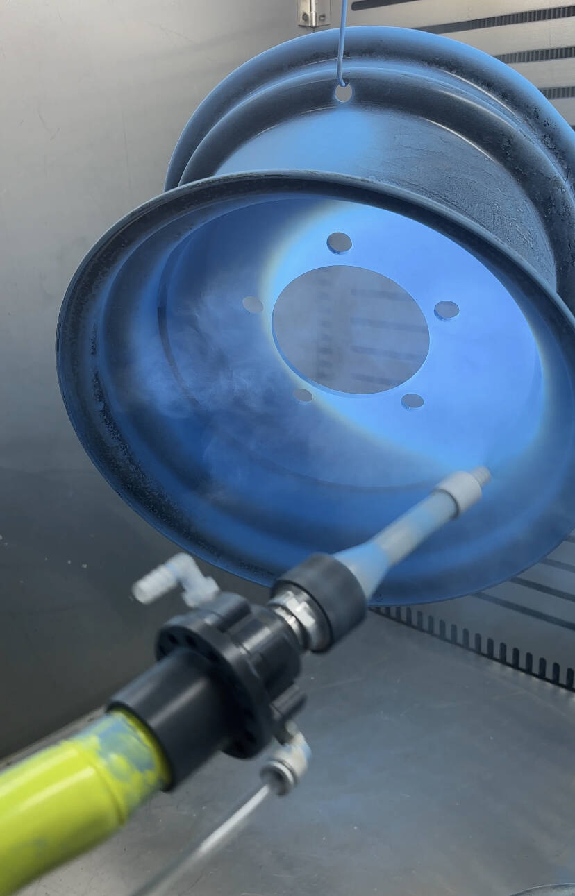 Although aluminum alloy is lightweight and corrosion-resistant, it has relatively low surface hardness and is prone to scratches. Long-term exposure to complex road conditions and varying climates demands exceptional weather resistance and wear resistance. Leveraging high electrostatic transfer efficiency, powder rotary bell spray guns ensure that powder coatings are evenly deposited on the wheel surface, forming a dense and smooth coating layer. This significantly enhances hardness and scratch resistance, protects against damage from stone impacts and road friction, and improves corrosion resistance to withstand rain, mud, and debris.